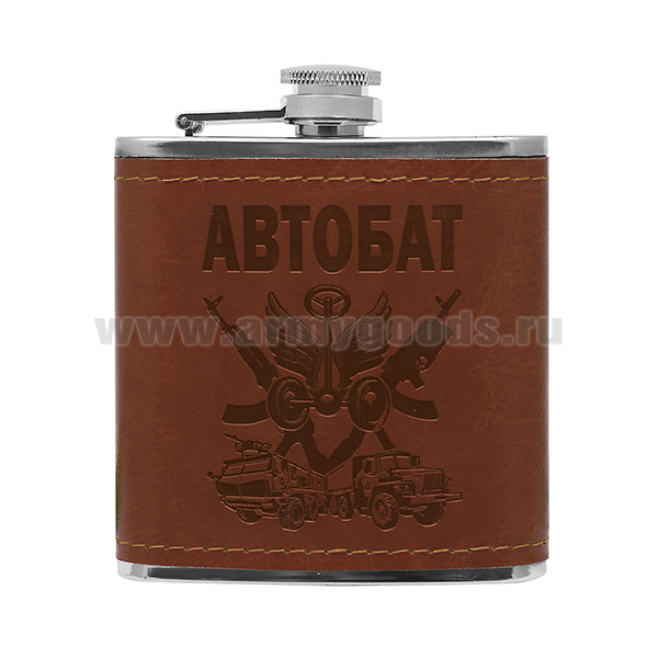 Фляга (нерж. сталь) с тиснением на коже Автобат (6 oz (180 мл)