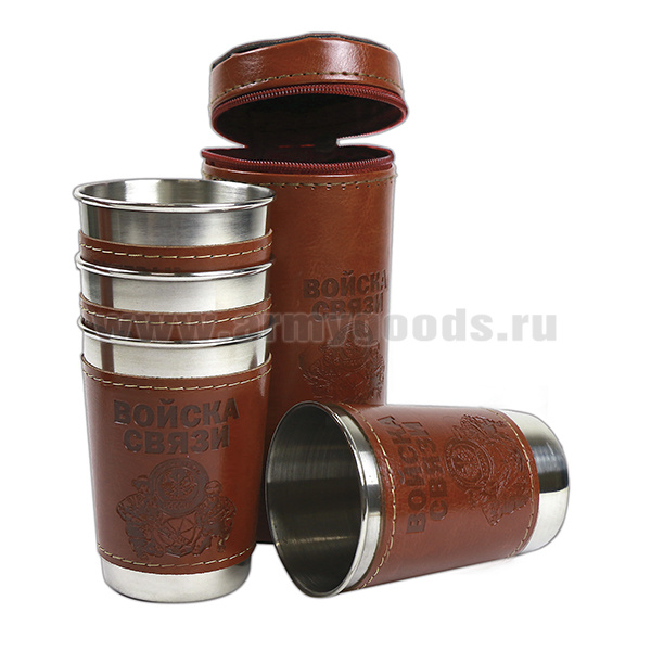 Стопки мет. (4х125 мл) с тиснением на коже Войска связи (в чехле)