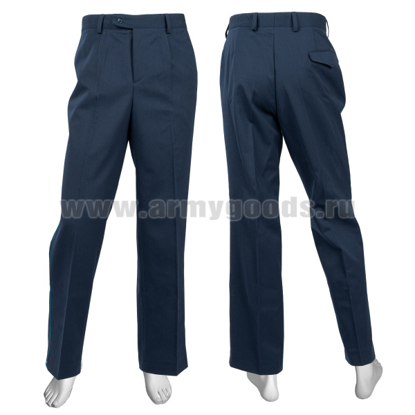 Брюки форм. п/ш ВВС синие/голубой кант (ТУ 858-6521-2018) в комплект к кителю с воротником-стойкой (задний карман с клапаном, брючины не зауженные)