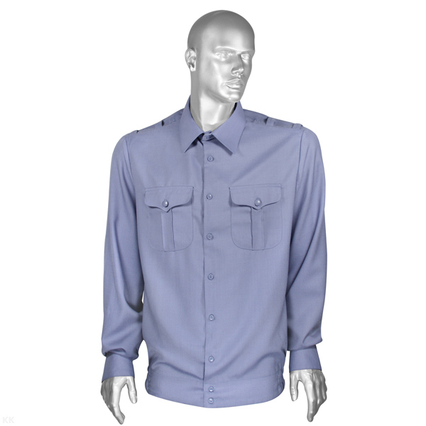 Главная-01 ОДЕЖДА-0119 РУБАШКИ МУЖСКИЕ-Рубашка форм. генеральская (дл.рук.) серо-голубая (шерсть 45%, п/э 55%) р-ры с 37 по 46