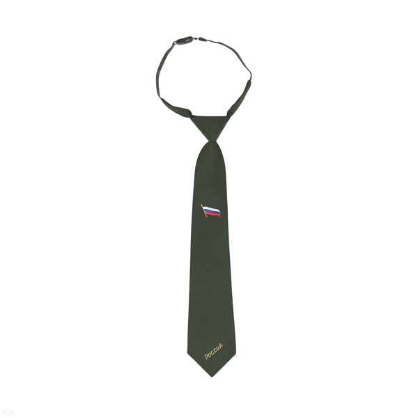 Галстук-регат с вышивкой оливк. с флагом РФ п/э