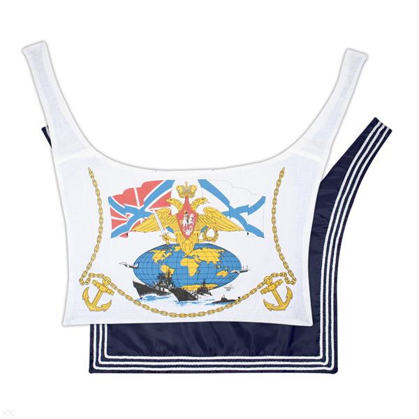 Гюйс ДМБ с рисунком ВМФ (шелк темный с нашитыми объемными полосами)
