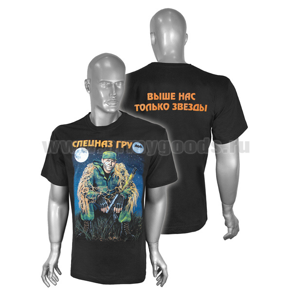 Футболка с рисунком краской Спецназ ГРУ Выше нас только звезды (черная)