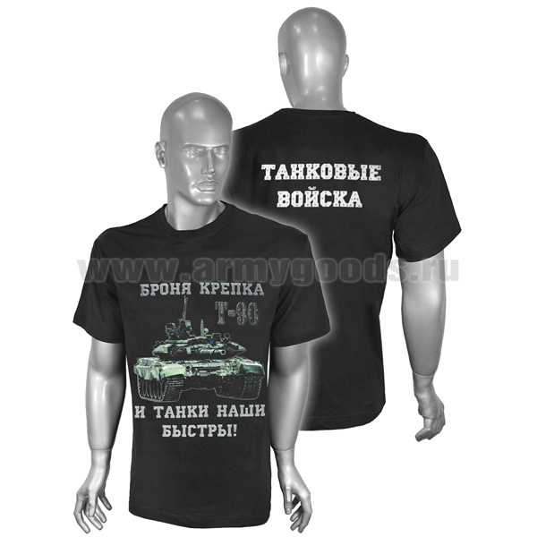 Футболка с рисунком краской Броня крепка и танки наши быстры! (черная)