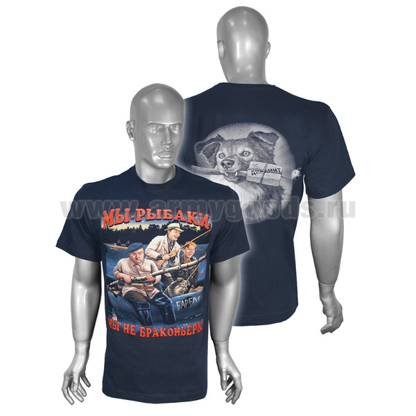 Футболка с рисунком краской Мы - рыбаки Мы не браконьеры (темно-синяя)