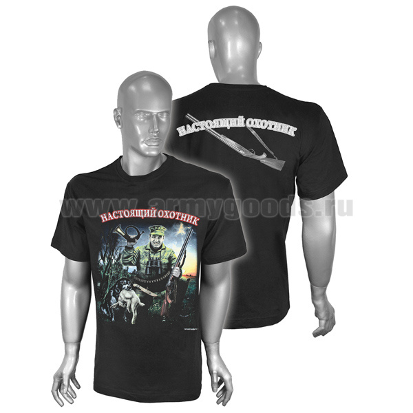 Футболка с рисунком краской Настоящий охотник (черная)