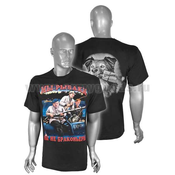Футболка с рисунком краской Мы - рыбаки Мы не браконьеры (черная)