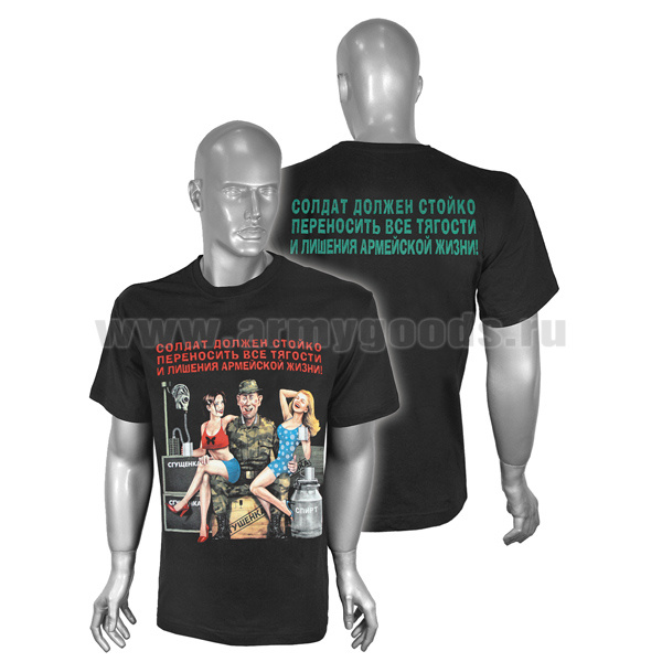 Футболка с рисунком краской Солдат должен стойко переносить... (черная)