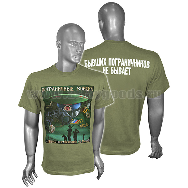 Главная-01 ОДЕЖДА-0140 ФУТБОЛКИ С ПОЛНОЦВЕТНЫМ ИЗОБРАЖЕНИЕМ, НАНЕСЕННЫМ КРАСКОЙ-Футболка с рис краской Пограничные войска (Бывших пограничников не бывает) оливковая