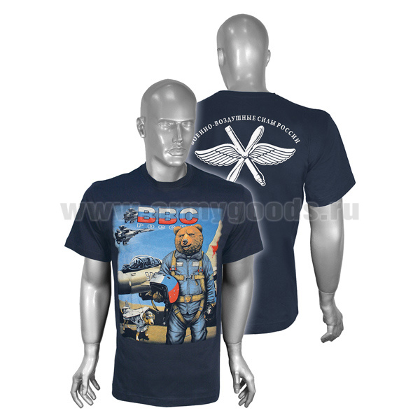 Главная-01 ОДЕЖДА-0140 ФУТБОЛКИ С ПОЛНОЦВЕТНЫМ ИЗОБРАЖЕНИЕМ, НАНЕСЕННЫМ КРАСКОЙ-Футболка с рисунком краской ВВС России (медведь) темно-синяя