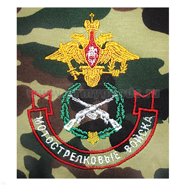 Главная-01 ОДЕЖДА-0141 ФУТБОЛКИ С ВЫШИВКОЙ НА ГРУДИ-Футболка с вышивкой на груди Мотострелковые войска (эмблема) зел. КМФ