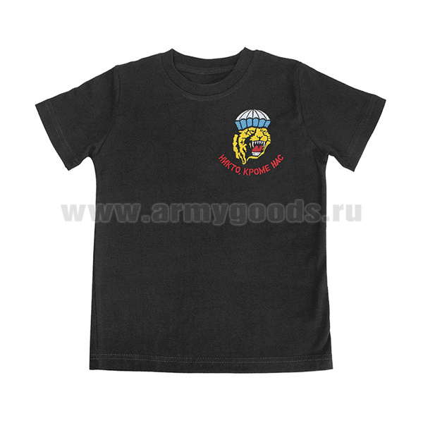 Футболка с вышивкой на груди Никто, кроме нас (тигр, парашют) черная детская