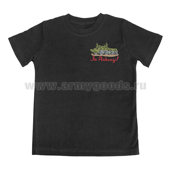 Футболка с вышивкой на груди За Родину! (БТР) черная детская