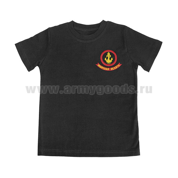 Футболка с вышивкой на груди Морская пехота черная детская