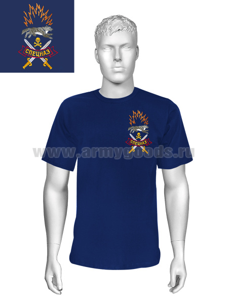 Футболка с вышивкой на груди Спецназ (взрыв) синяя