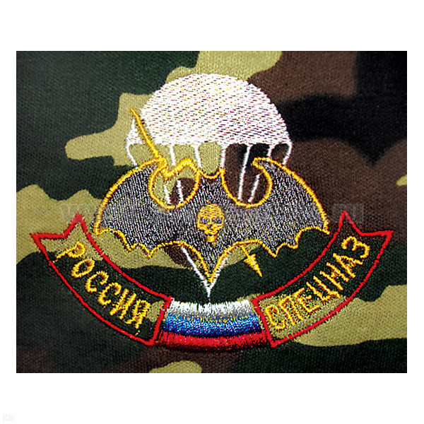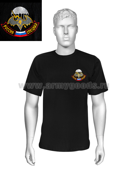 Футболка с вышивкой на груди Россия Спецназ (мышь с черепом) черн.