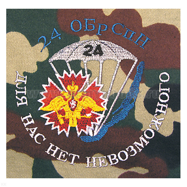 Футболка с вышивкой на груди 24 ОБрСпН Для нас нет невозможного, черн.
