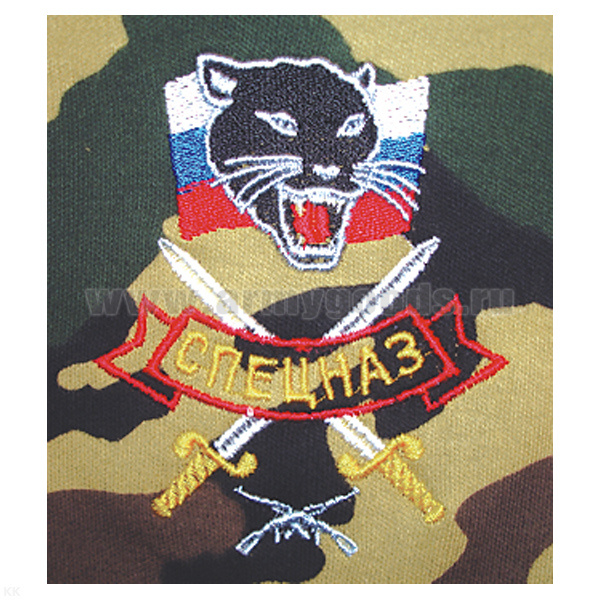 Футболка с вышивкой на груди Спецназ (пантера) зел. КМФ