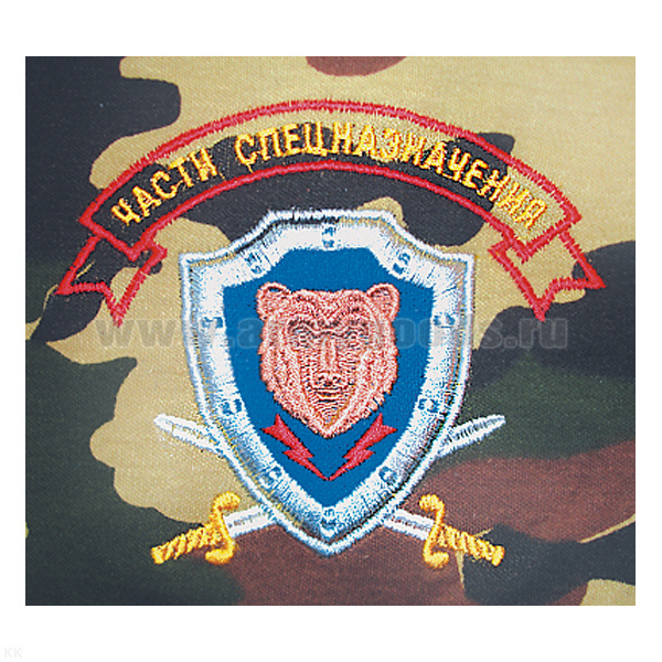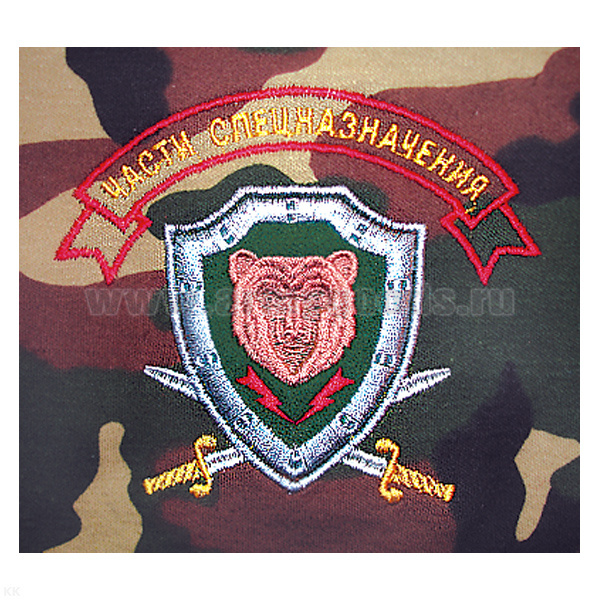 Футболка с вышивкой на груди Части спецназначения (медведь на зеленом щите) зел. КМФ