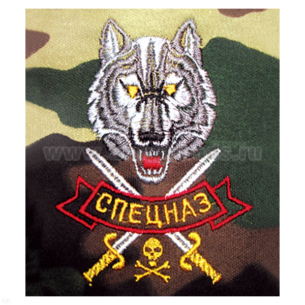 Футболка с вышивкой на груди Спецназ (волк) зел. КМФ