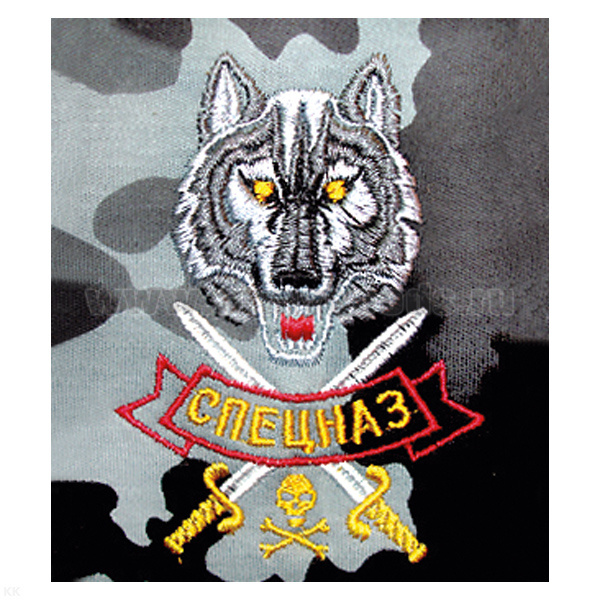 Футболка с вышивкой на груди Спецназ (волк) сер. КМФ