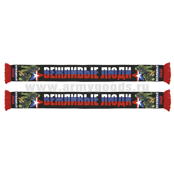 Шарф сувенирный (шелк полиэфирный) Вежливые люди (бойцы с кошкой)