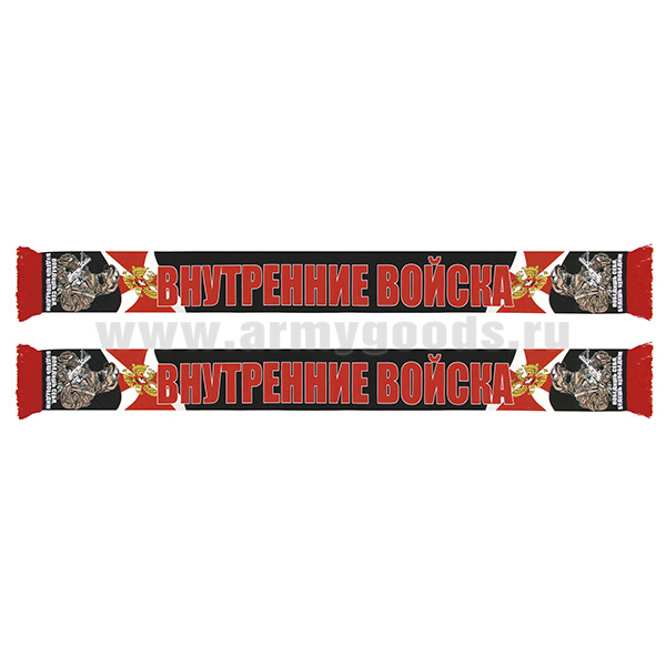 Шарф сувенирный (шелк полиэфирный) Внутренние войска (Победишь себя - будешь непобедим) боец (фон - черный)