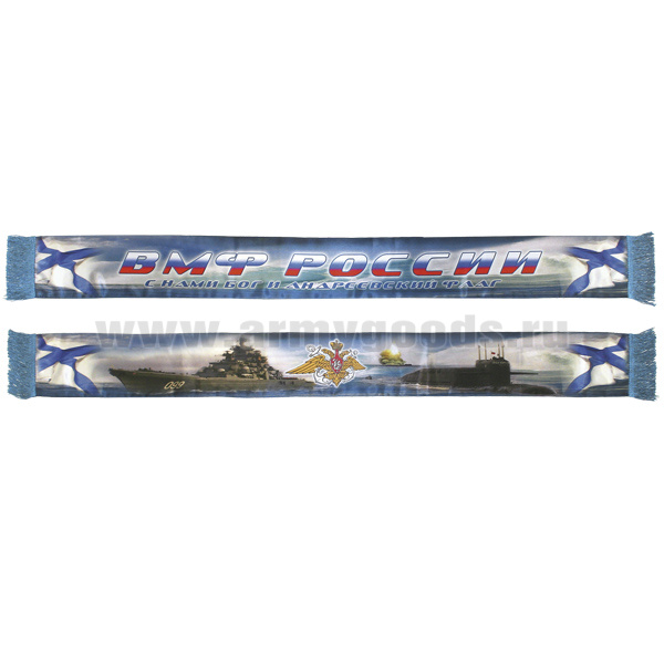 Шарф сувенирный (шелк полиэфирный) ВМФ России (С нами Бог и Андреевский флаг) с андреевским флагом
