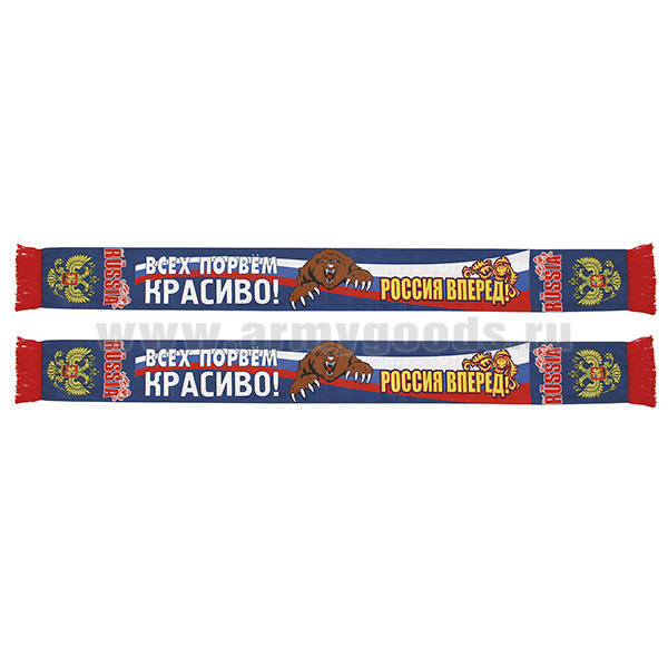 Шарф сувенирный (шелк полиэфирный) National Team Russia (Россия вперед! Всех порвем красиво!) с медведем