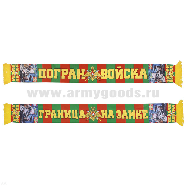 Шарф сувенирный (шелк полиэфирный) Пограничные войска (Граница на замке) пограничник с собакой