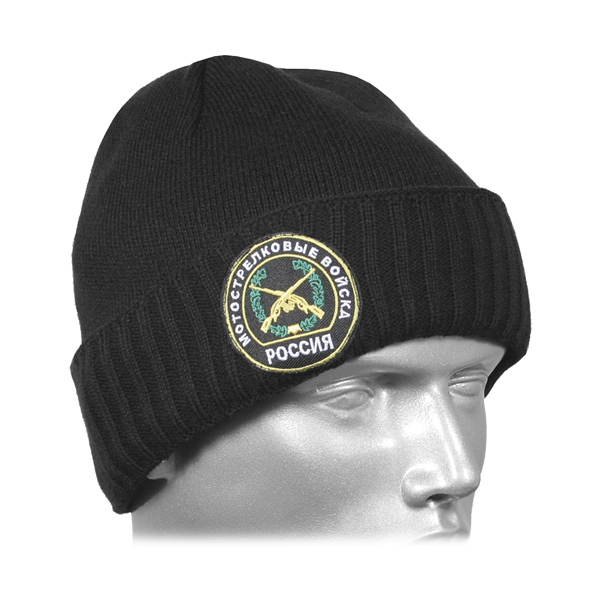 Шапка вязаная двойная п/ш черная с вышивкой Мотострелковые войска (эмблема ст/обр)