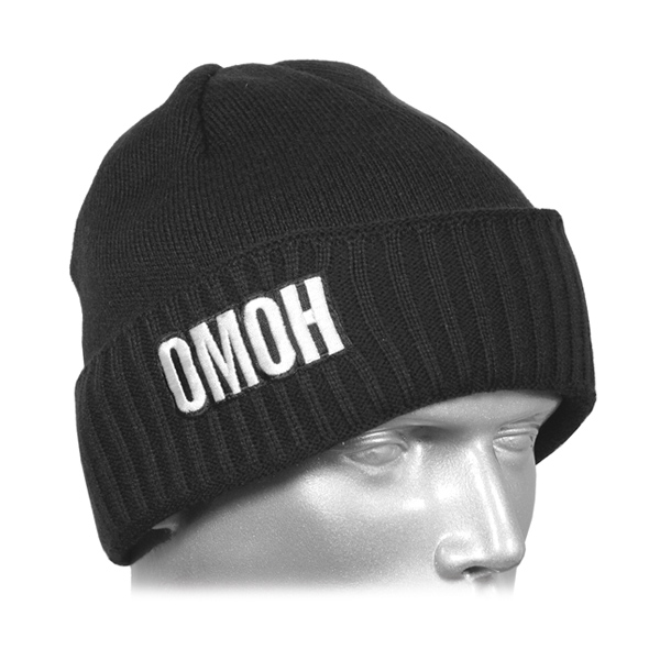 Шапка вязаная двойная п/ш черная с вышивкой ОМОН