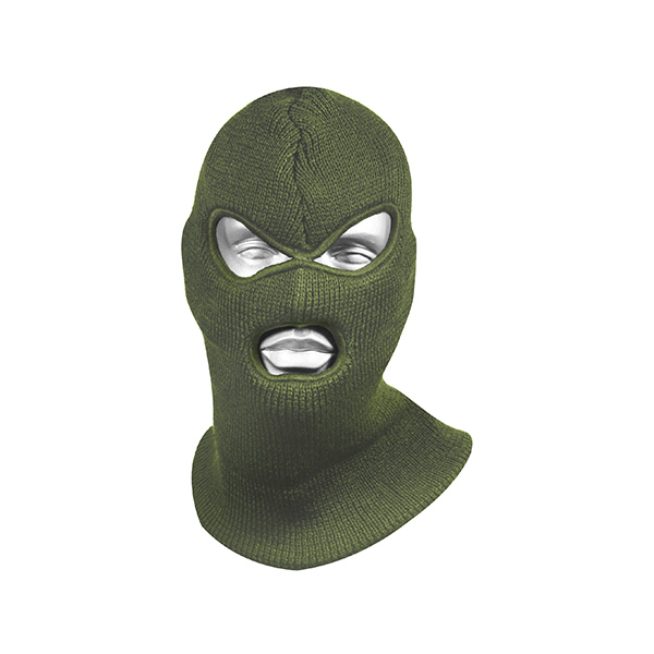 Маска вязаная двойная 100% акрил (отверстия для глаз и рта) оливковая М-9