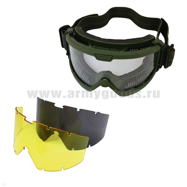 Очки защитные 15615701 (поликарбонат) на резинке (с 2 дополнительными цветными фильтрами) оливковые