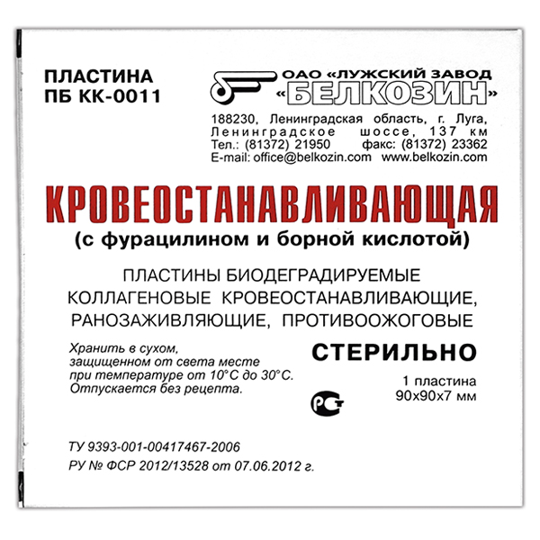 Пластина кровеостанавливающая (с фурацилином и борной кислотой) (90x90x7 мм) УЦЕНКА (истек срок годности)