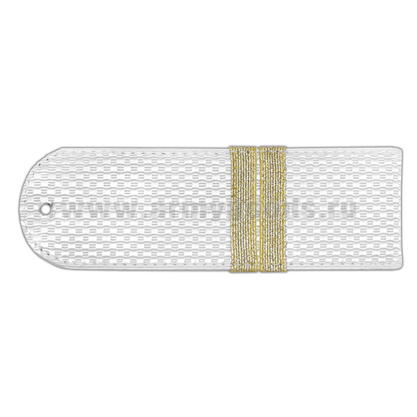 Погоны белые без канта (Полиция (ОВД) на рубашку) с нашит. металлизированным текстильным галуном (младший сержант) на пластике