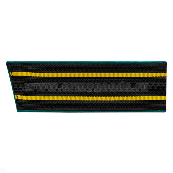 Погоны черные (зел. кант) 2 желт. пр. (со скосом) 15,5 см