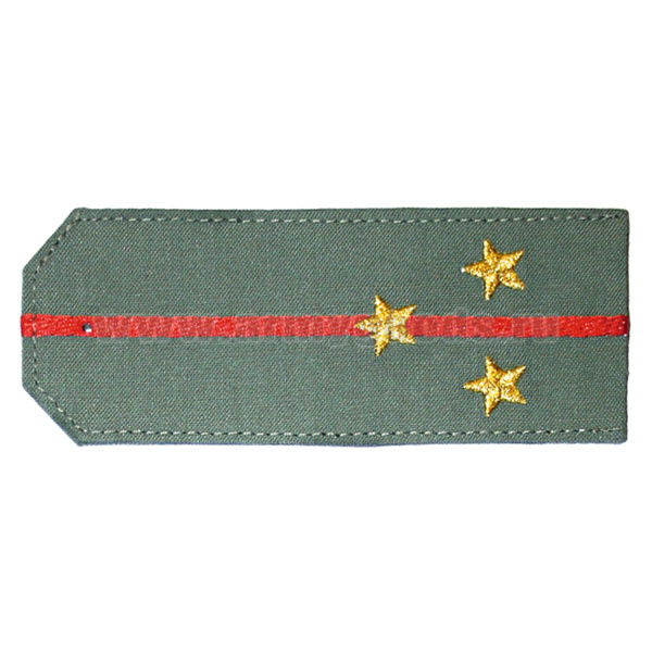 Погоны «машинная вышивка» из рубаш. ткани оливк. с 1 вышит. красн. просв. с вышит. звездами (ст. лейтенант)