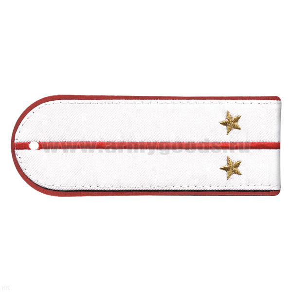 Погоны «машинная вышивка» из рубаш. ткани Полиция белые с 1 вышит. красн. просв. с вышит. звездами (лейтенант)