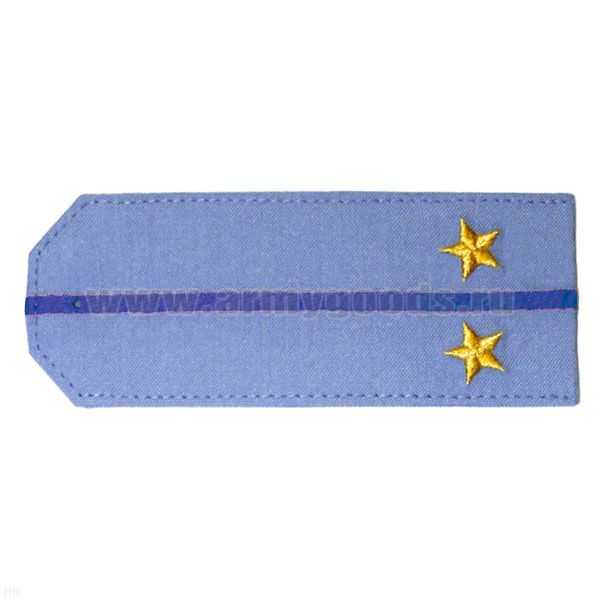 Погоны «машинная вышивка» из рубаш. ткани серо-голуб. с 1 вышит. вас. просв. с вышит. звездами (лейтенант)