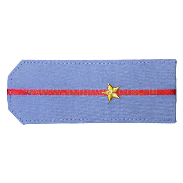 Погоны «машинная вышивка» из рубаш. ткани серо-голуб. с 1 вышит. красн. просв. с вышитой звездой (мл. лейтенант)