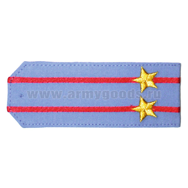 Погоны «машинная вышивка» из рубаш. ткани серо-голуб. с 2 вышит. красн. просв. с вышит. звездами (подполковник)
