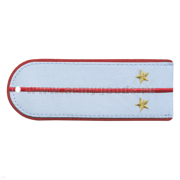 Погоны «машинная вышивка» из рубаш. ткани Полиция бледно-голубые с 1 вышит. красн. просв. с вышит. звездами (лейтенант)