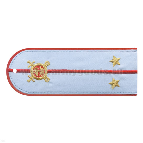 Главная-06 ПОГОНЫ-0606 ПОГОНЫ "МАШИННАЯ ВЫШИВКА"-Погоны «машинная вышивка» из рубаш. ткани Полиция бледно-голуб. с вышит. эмблемой (лейтенант) пластик