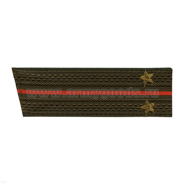 Погоны ОВ оливк. с 1 красн. просв., вышит. канителью (лейтенант) со скосом
