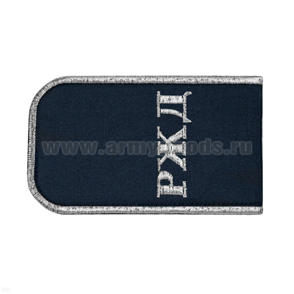 Главная-06 ПОГОНЫ-0618 ПОГОНЫ РЖД, ГОРЭЛЕКТРОТРАНС-Погоны РЖД вышит. мет. серебр. синие «РЖД»