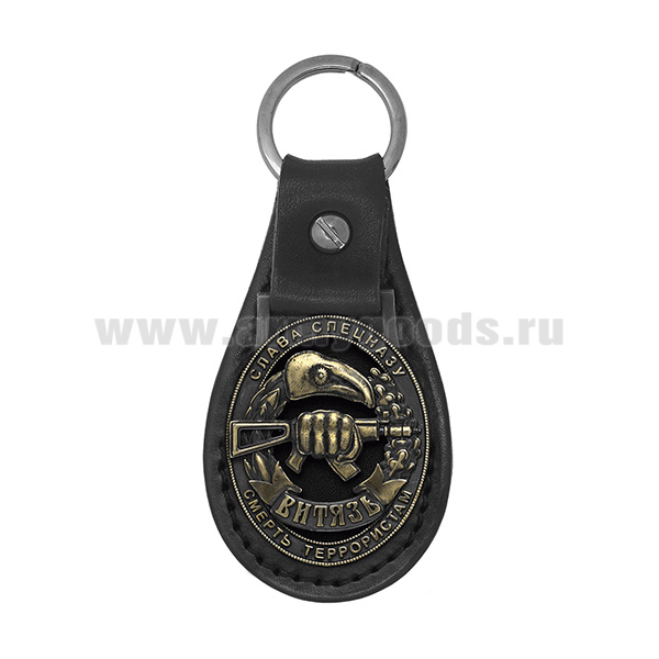 Брелок мет. (литье) на подкладке из нат. кожи Витязь (Слава спецназу, смерть террористам)