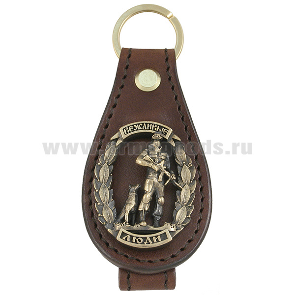 Брелок мет. (литье) на подкладке из нат. кожи Вежливые люди (боец с собакой)