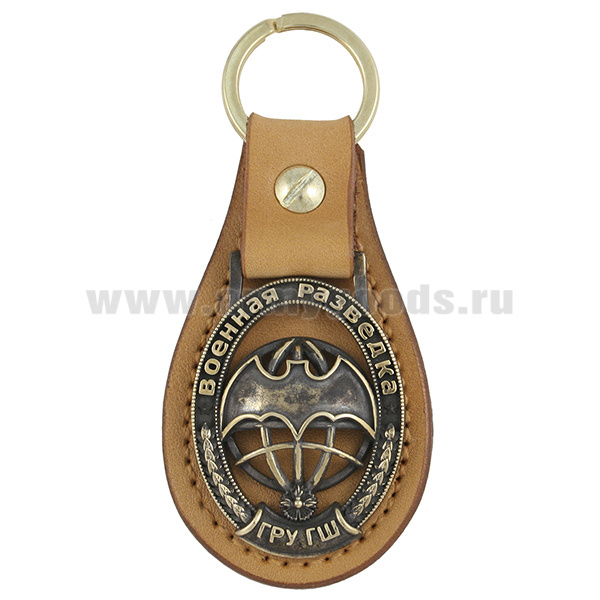 Брелок мет. (литье) на подкладке из нат. кожи Военная разведка ГРУ ГШ
