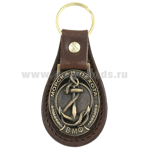 Брелок мет. (литье) на подкладке из нат. кожи Морская пехота (ВМФ)